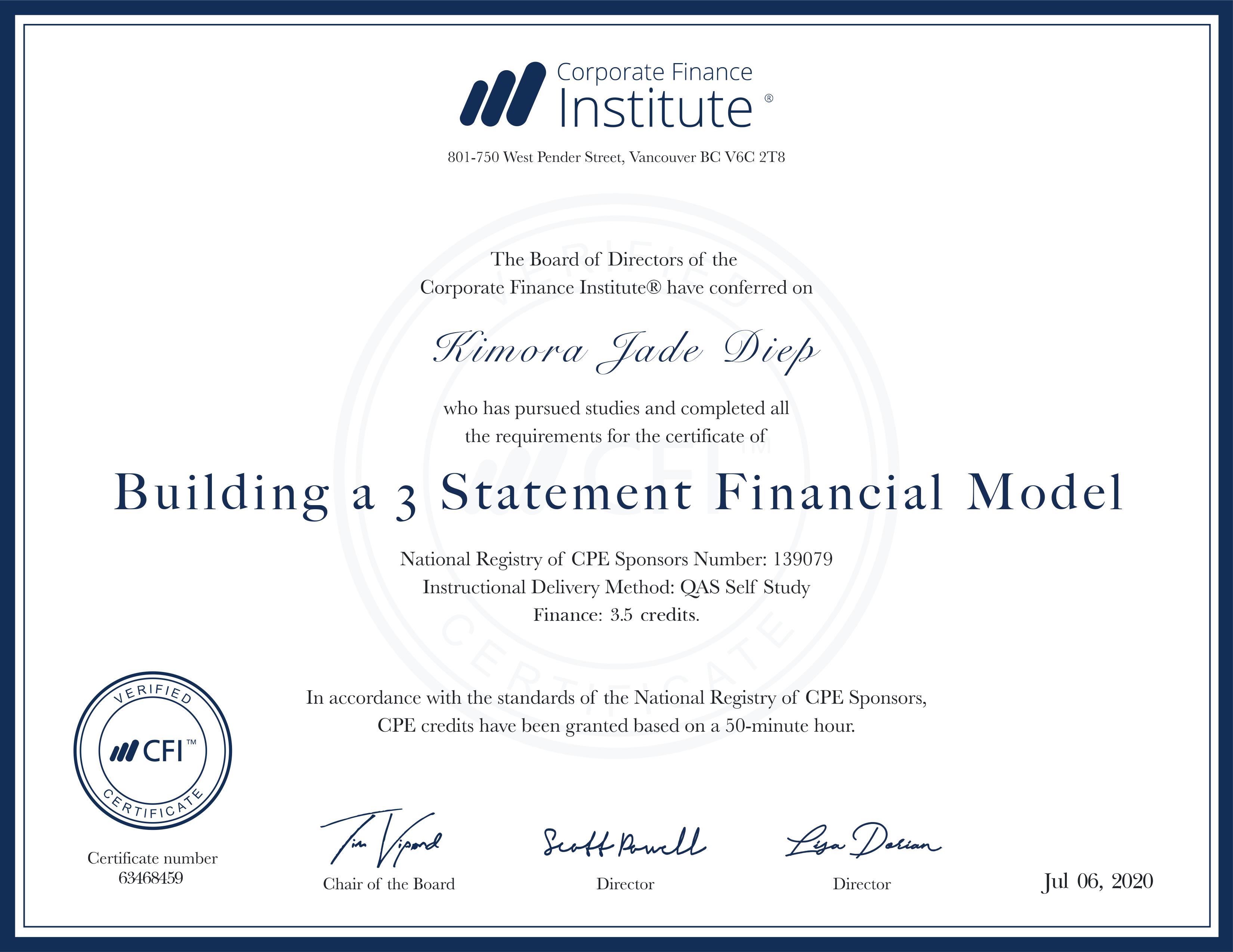 3 Statement Financial Model